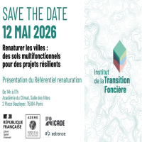 L’Institut de la Transition foncière organise un événement consacré à la présentation du Référentiel Renaturation, un outil d'aide à la décision pour les projets de renaturation, le mardi 12 mai 2026 à 14h00, à l'Académie du Climat (2 place Baudoyer, Paris 4e), salle des fêtes.